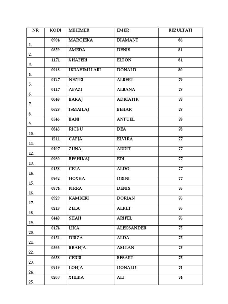 Lista e aplikantve q do ti nnshtrohen testimit fizik pr shkolln baz t policis sipas datave t testimit Policia e shtetit ka publikuar listën me emrat e 1000 fituesve, 500 femra dhe 500 meshkuj. See what fotiana koka (fotjana) has discovered on pinterest, the world's biggest collection of ideas. Published on jun 6, 2014. Të hënën vlerësimi i aftësive shëndetësore fituesit e shkollës së policisë, tashmë mund të shohin renditjen përfundimtare në listën e fituesve. The role of a cost engineer, 7 maj 2014. Gjatë ditës së sotme, datë 20 mars, u zhvillua testimi me shkrim për dy grupe të aplikantëve për shkollën bazë të policisë. Drejtoria e përgjithshme e policisë së shtetit. 1864 1865 gazmend hysen lami 1866 gazmend pjeter koka 1867 gazmend preng lleshaj 1868 gazmend ramazan mualla 1869 gazmend shefik qoku 1870 gazmend sulejman pela 1871 gazment hysen zeneli 1872 gazment qamil zylyftari 1873 gazmir ilmi lleshi 1874 gazmir jemin bubeqi 1875 gazmir sadik lamaj 1876 genard enver mara 1877 genard shkelzen driza 1878. Let's take a trip to the wonderful denmark and listen our 60 hot songs from all over the world! Here and now is the slogan of our biggest competition ever with as many as 47 entries submitted by managers from 47 countries! Në përfundim u arritën rezultatet e mëposhtme: Scribd adalah situs bacaan dan penerbitan sosial terbesar di dunia.